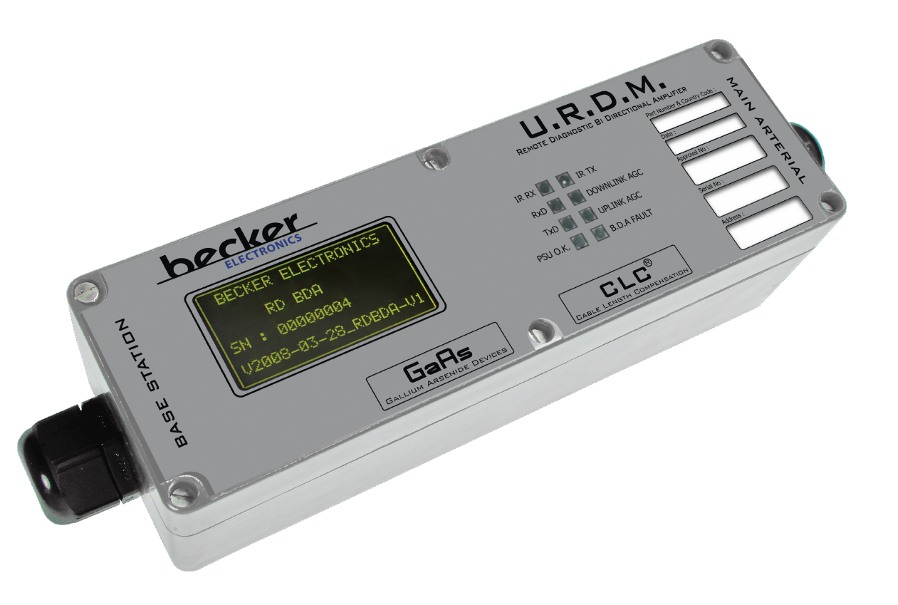 Becker Mining Systems BDA specifications are optimally suited to maximize these performance criteria. The BDA serves to maintain the strength of RF signal levels along the Leaky Feeder coaxial cable. The amplifier is unique in that it offers the lowest possible noise contribution to an already weak RF carrier when operating in collocation with a strong carrier.